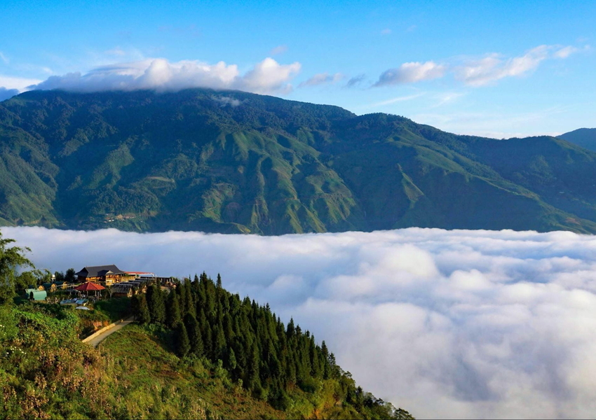 Đoàn có dịp trải nghiệm với khúc đường ngoằn ngoèo, thi thoảng đoàn được chiêm ngắm các loài hoa đỗ quyên, táo mèo và các loài hoa cúc dại dọc đường. Đến đây, quý khách sẽ đến với địa điểm săn mây nổi tiếng của Tà Xùa, nơi có những quán cà phê thơ mộng, địa điểm săn mây lý tưởng nơi núi rừng.