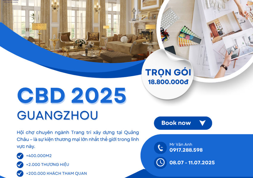 Ăn sáng tại khách sạn. Đoàn khởi hành tham dự triển lãm CBD Quảng Châu 2025 tại Khu phức hợp Hội chợ Canton và Trung tâm Triển lãm Thương mại Thế giới Poly (PWTC)