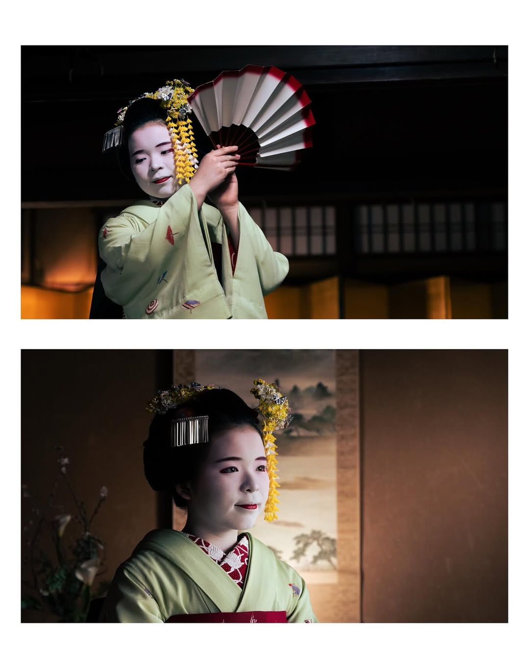 Tiếp theo là giai đoạn Minarai – họ bắt đầu mặc kimono, trang điểm và đi theo các Maiko lớn tuổi hơn để quan sát cách tiếp khách, biểu diễn và ứng xử trong các buổi tiệc.