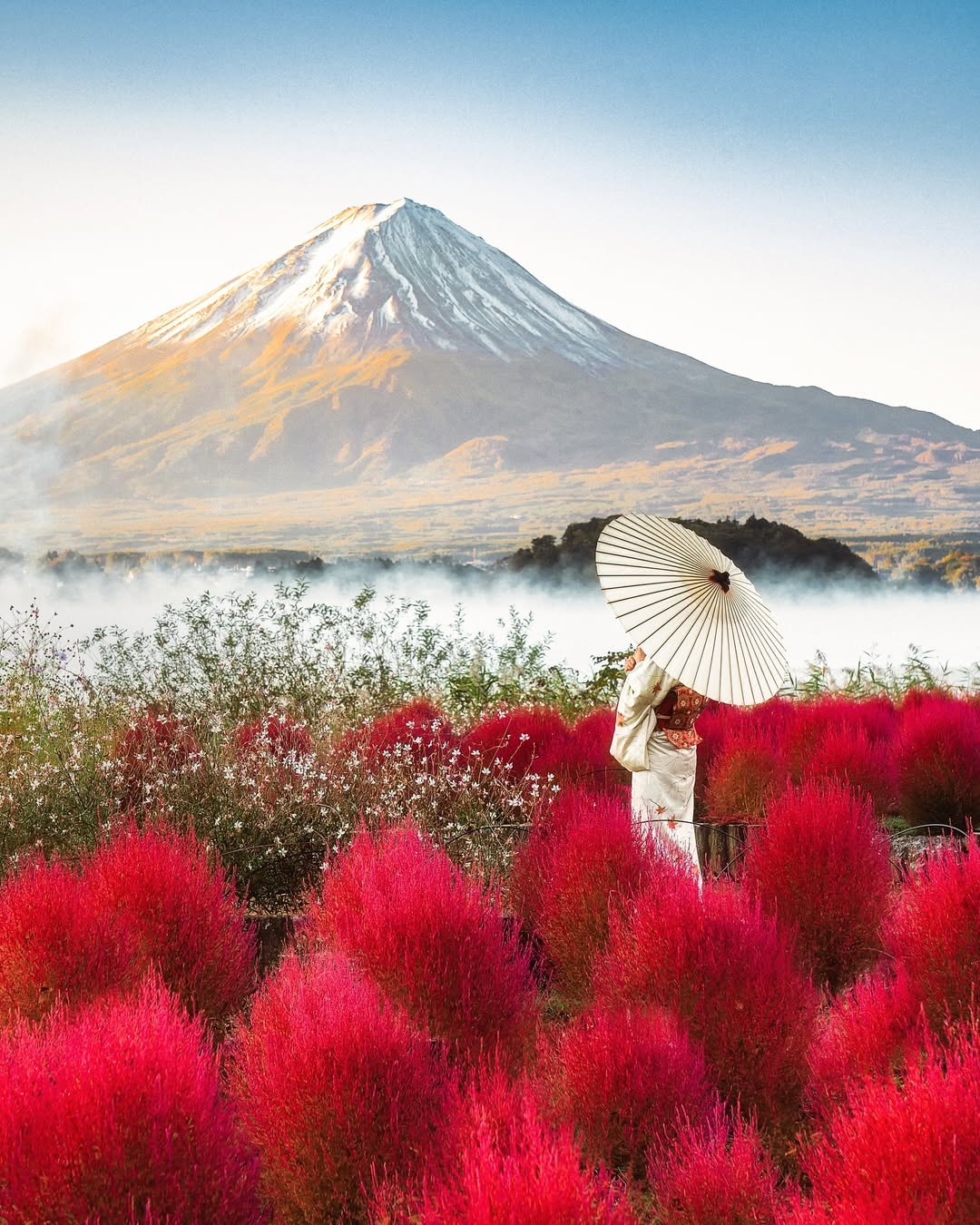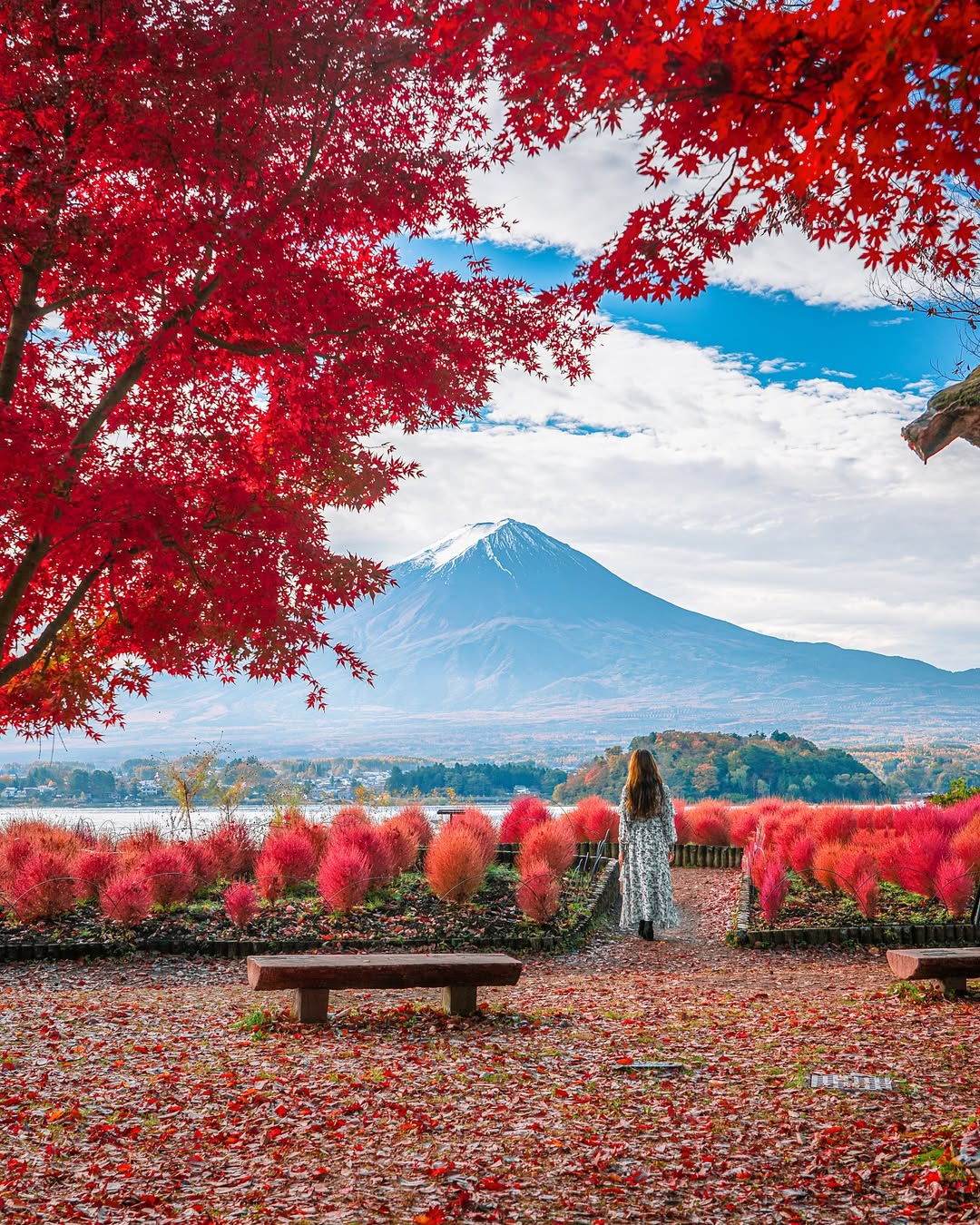 Nhật Bản là điểm đến mơ ước của nhiều du khách, và mùa thu (từ tháng 10 đến tháng 11) chính là khoảng thời gian đẹp nhất trong năm. Khi những hàng phong đồng loạt thay áo mới, núi Phú Sĩ soi bóng xuống mặt hồ Kawaguchiko, và những thảm kochias đỏ rực ở công viên Oishi Park bắt đầu nhuộm sắc, bạn sẽ cảm nhận được một Nhật Bản lãng mạn và yên bình như trong tranh.